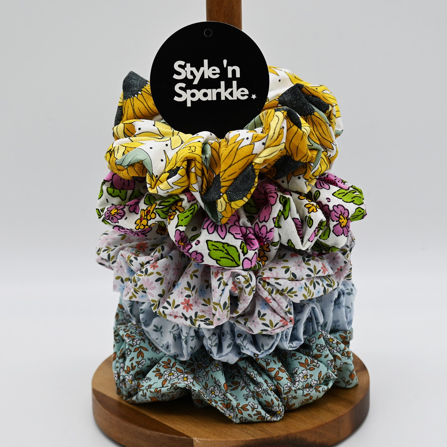 This collection of floral cotton scrunchies consists of 6 variants and also in sizes from extra large (XL), large, and medium sizes subject to availability.