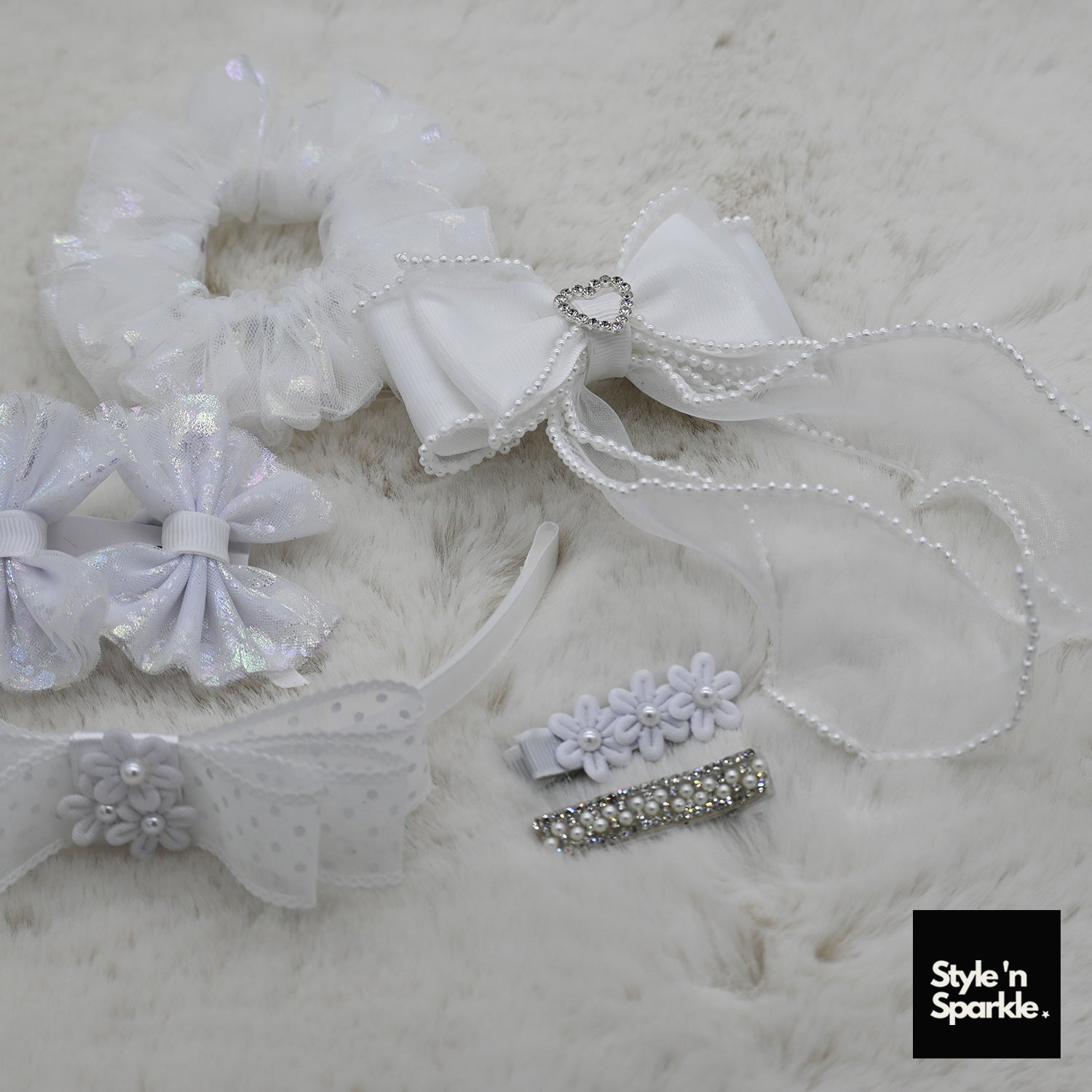White Tulle Kids Gift Bag Hair Accessory Collection